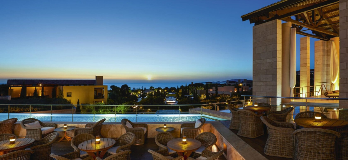 Adults-only chic resort offers the ultimate romantic setting, surrounded by a five-centuries-old Venetian olive grove overlooking the glittering, tranquil bay. Filled with open-air chic wine bars and hosting terrace-garden gourmet restaurants with delectable Greek-Italian regional specialties, Domes Miramare is a synonym to refinement and glamour